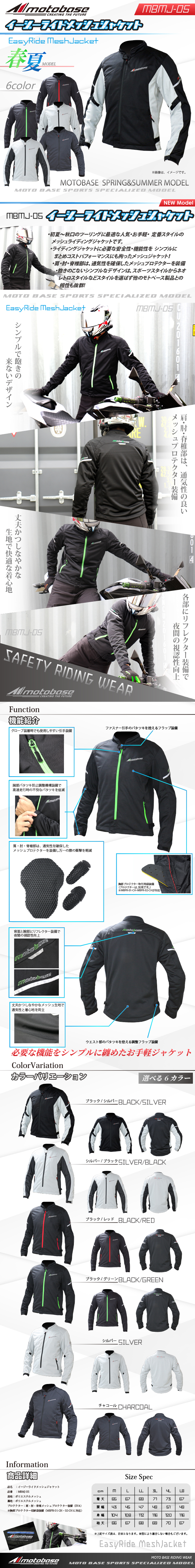 ・初夏~秋口のツーリングに最適な人気・お手軽・定番スタイルのメッシュライディングジャケットです。